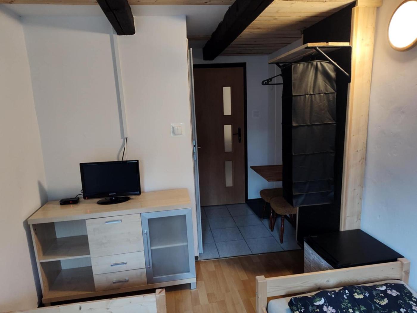 Pokój trzyosobowy z łazienką. This triple room has a private bathroom, a dining area, a wardrobe as well as a terrace. The unit has 2 beds. Pokój Trzyosobowy - 3 osobowy. Powierzchnia pokoju ok.: 20 mkw. ;