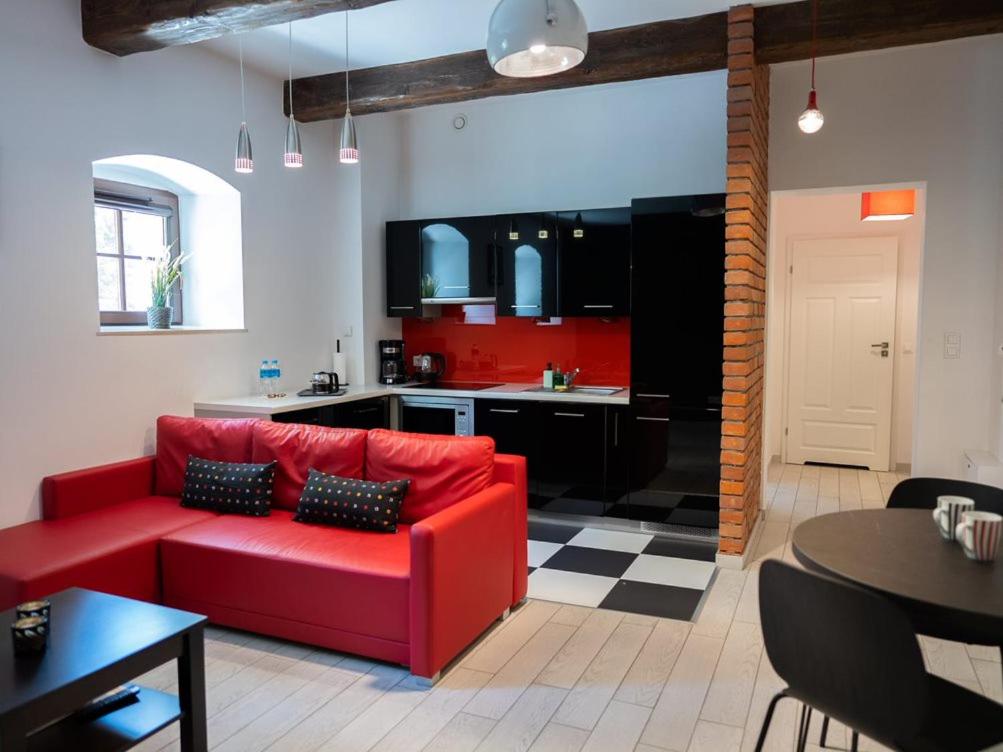 Apartament z 1 sypialnią. This apartments standout feature is the fireplace. Featuring a private entrance, this apartment is comprised of 1 living room, 1 separate bedroom and 1 bathroom with a bath and a hairdryer. In the well-equipped kitchen, guests will find a stovetop, a refrigerator, a dishwasher and kitchenware. This apartment features a washing machine, soundproof walls, flat-screen TV with satellite channels, as well as chocolate for guests. The unit offers 2 beds. Apartament - 4 osobowy. Powierzchnia pokoju ok.: 50 mkw. ;