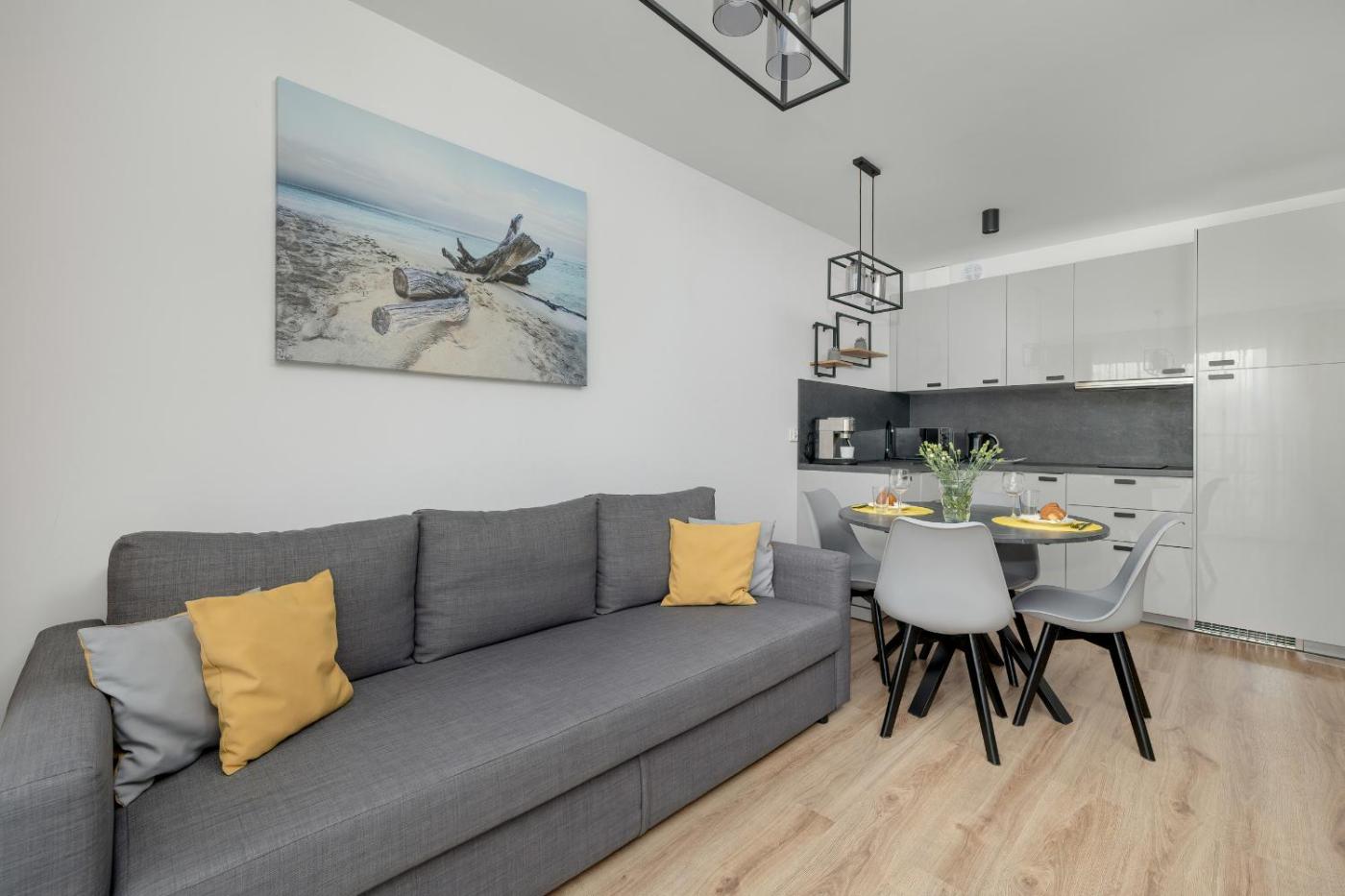 Exclusive and Modern Grey Apartment with Furnished Balcony in Kołobrzeg by Noclegi Renters