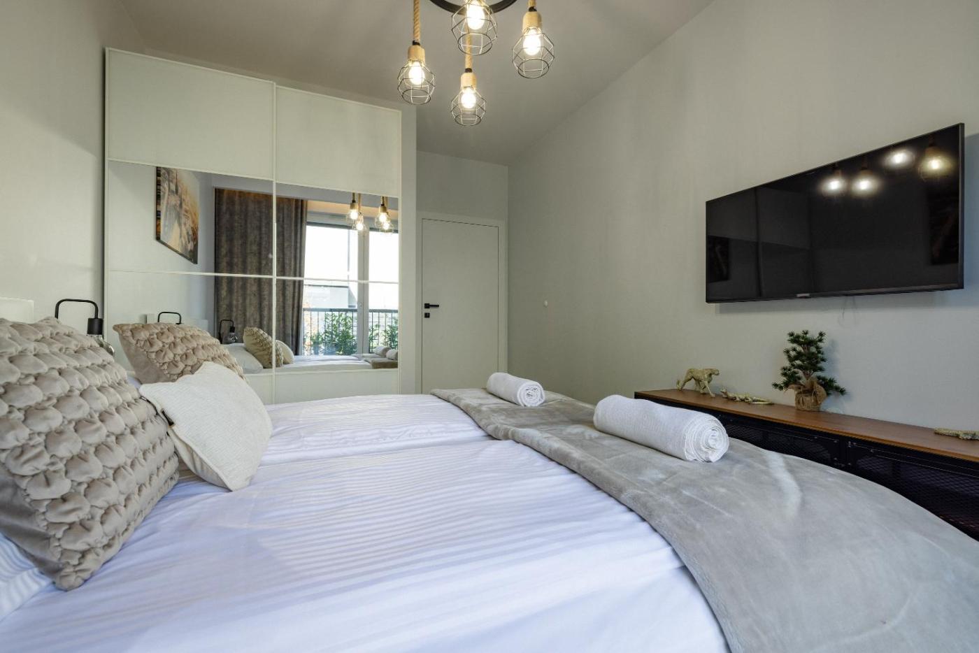 Apartament z 2 sypialniami. Meals can be prepared in the well-fitted kitchenette, which is fitted with a stovetop, a refrigerator, a dishwasher and kitchenware. The air-conditioned apartment offers a flat-screen TV with streaming services, a washing machine, a private entrance, soundproof walls as well as garden views. The unit offers 3 beds. Apartament - 6 osobowy. Powierzchnia pokoju ok.: 57 mkw.