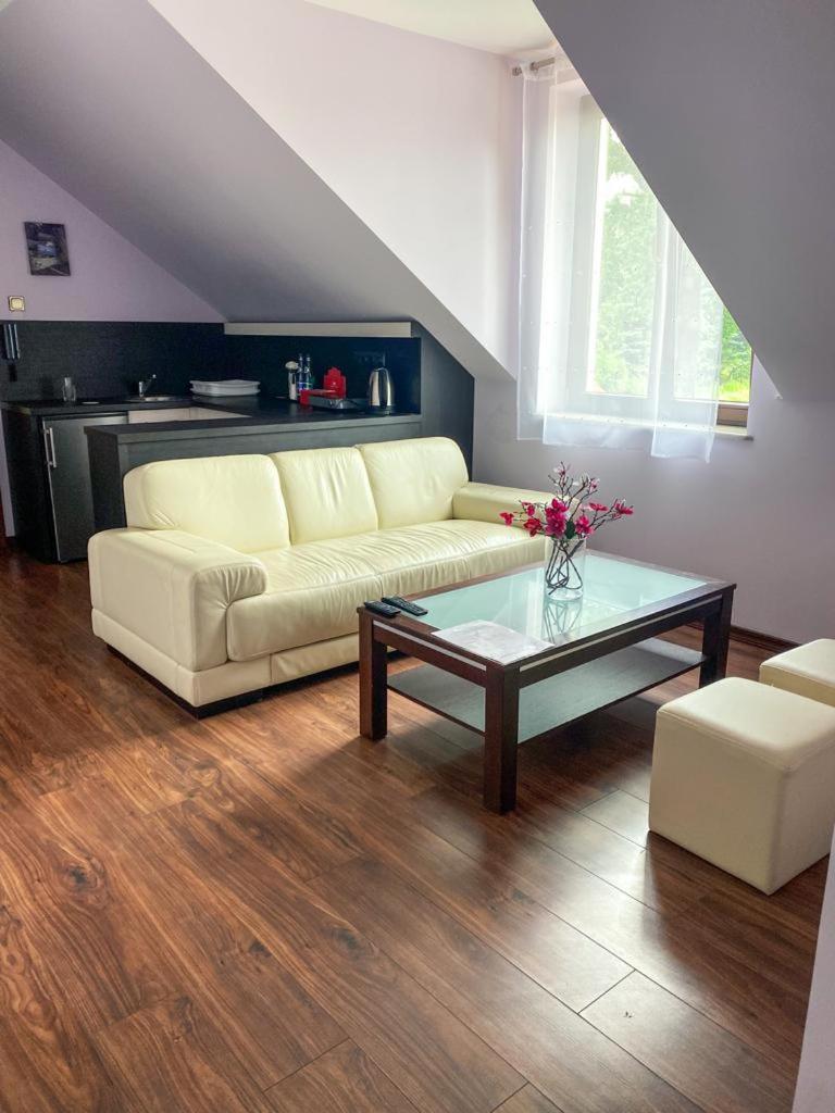 Duży pokój dwuosobowy. The double rooms kitchenette, which features a refrigerator, is available for cooking and storing food. The spacious double room offers a tea and coffee maker, as well as a private bathroom featuring a bath or a shower. Pokój Dwuosobowy - 4 osobowy. Powierzchnia pokoju ok.: 29 mkw. ;