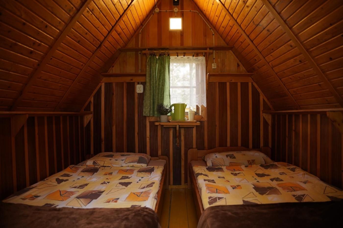 Domek ze wspólną łazienką. Ten niewielki pokój dwuosobowy usytuowany jest w domku. Łazienka znajduje się w budynku sanitarnym. Domek - 2 osobowy. Powierzchnia pokoju ok.: 8 mkw. ;
