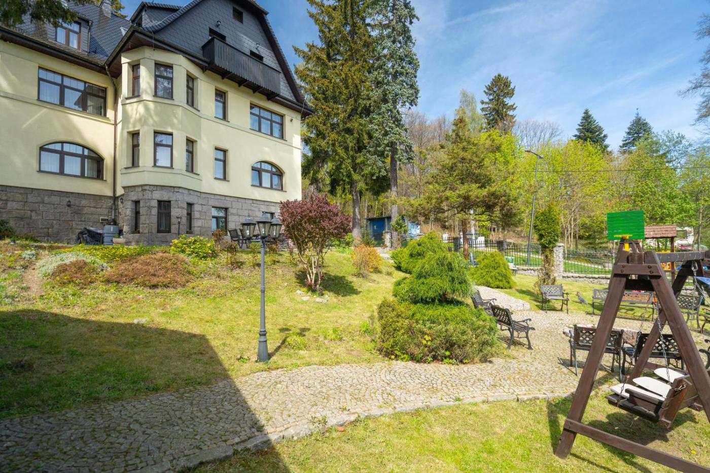 Pensjonat Willa Słoneczna Róża Pakiety Świąteczne z wyżywieniem mieści się w stuletnim dworze w stylu regionalnym. Obiekt jest usytuowany w centrum Szklarskiej Poręby. Pensjonat oferuje przytulne pokoje z bezpłatnym bezprzewodowym dostępem do Internetu oraz 21-calowym telewizorem z dostępem do kanału, na który przekazywany jest obraz z kamer monitorujących parking.