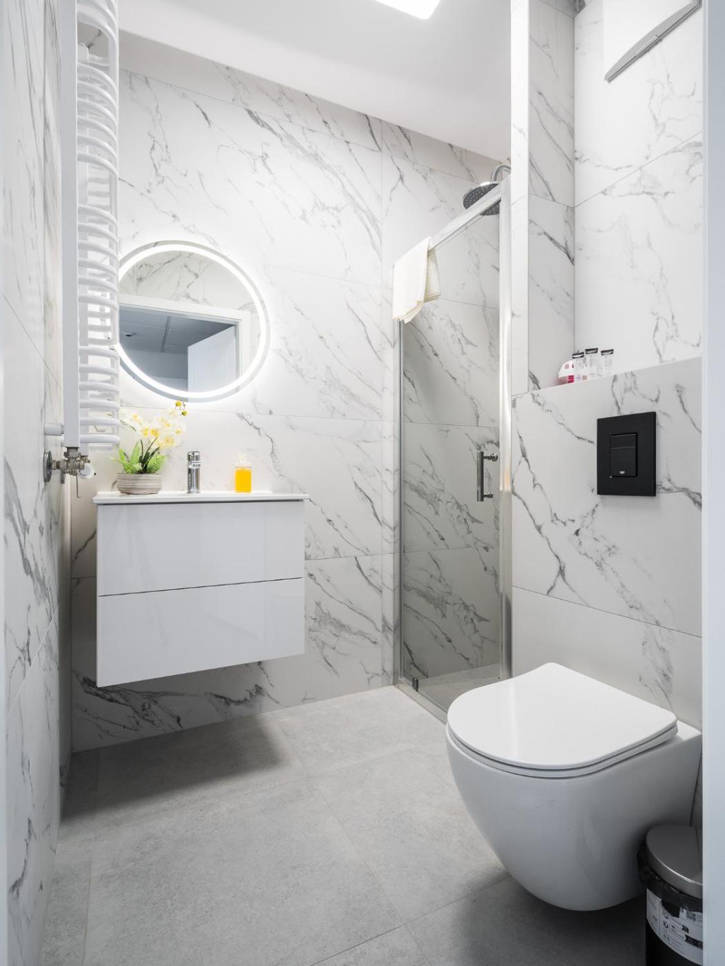 Studio z balkonem. In the kitchen, guests will find a stovetop, a refrigerator, kitchenware and a microwave. This air-conditioned studio is comprised of a flat-screen TV with streaming services, a private bathroom as well as a terrace with city views. The unit has 1 bed. Studio - 2 osobowy. Powierzchnia pokoju ok.: 20 mkw. ;