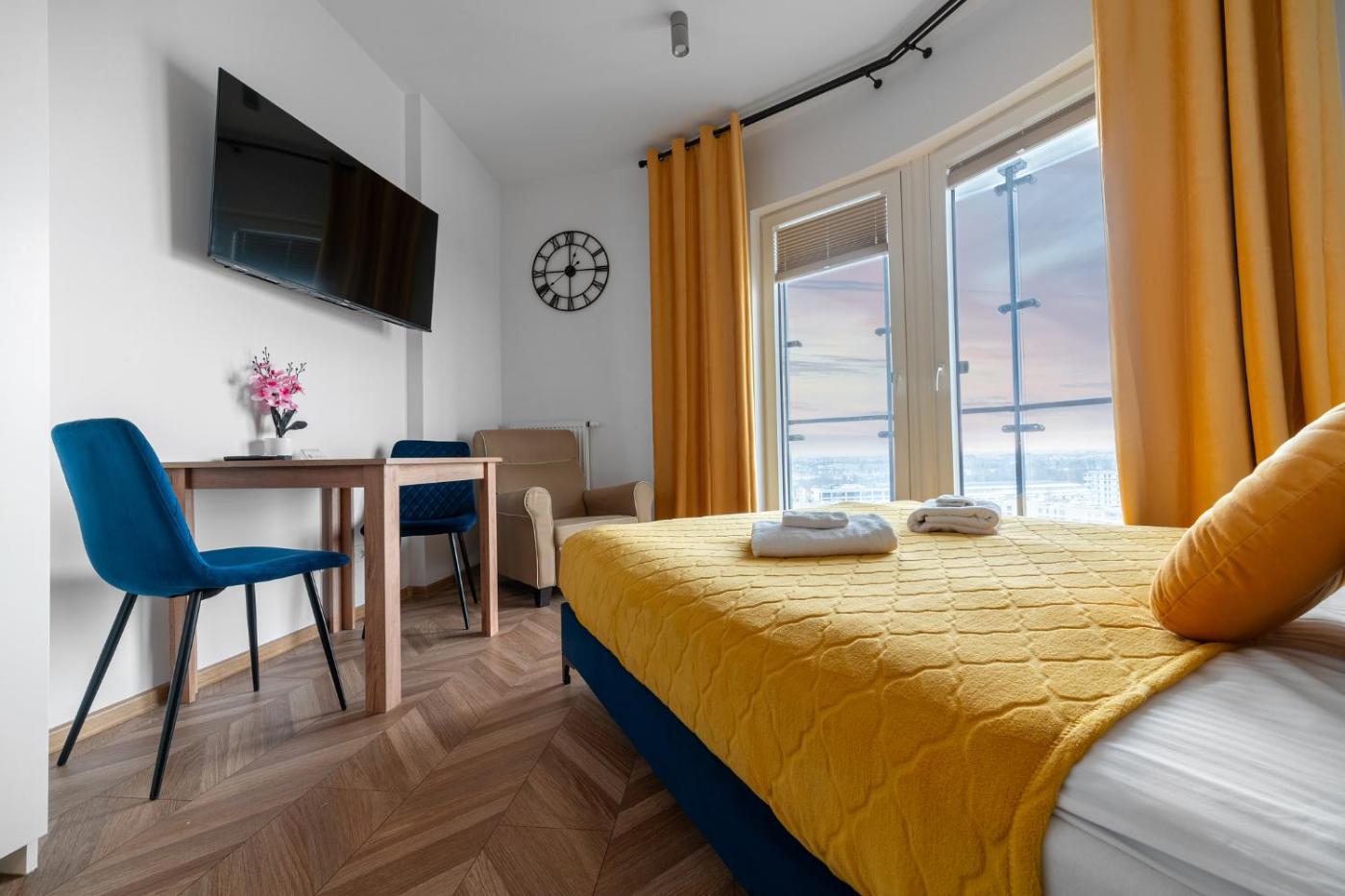 Apartament Premium z 1 sypialnią. The air-conditioned apartment has 1 bedroom and 1 bathroom with a walk-in shower and a hairdryer. The well-equipped kitchen features a stovetop, a refrigerator, kitchenware and a microwave. Boasting a terrace with city views, this apartment also features a wardrobe and a flat-screen TV with cable channels. The unit has 1 bed. Apartament - 2 osobowy. Powierzchnia pokoju ok.: 21 mkw. ;