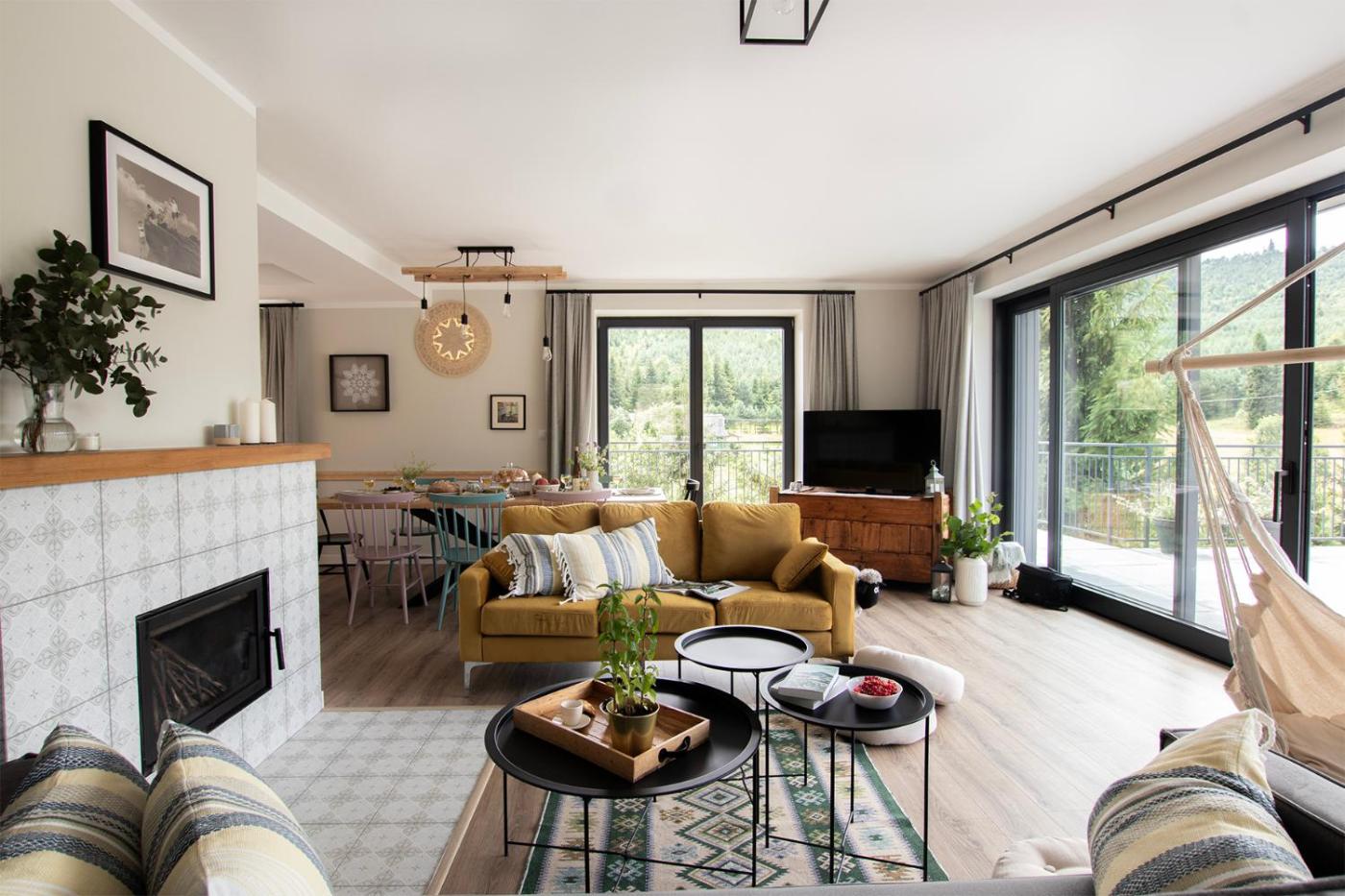 Willa. This villa features a hot tub, sauna and fireplace. This spacious villa features 1 living room, 5 separate bedrooms and 4 bathrooms with a bath and a shower. The well-fitted kitchenette has a stovetop, a refrigerator, a dishwasher and kitchenware. The villa features a washing machine, a private entrance, a tea and coffee maker as well as a terrace with garden views. The unit has 8 beds and 2 futons. Willa - 15 osobowy. Powierzchnia pokoju ok.: 250 mkw.